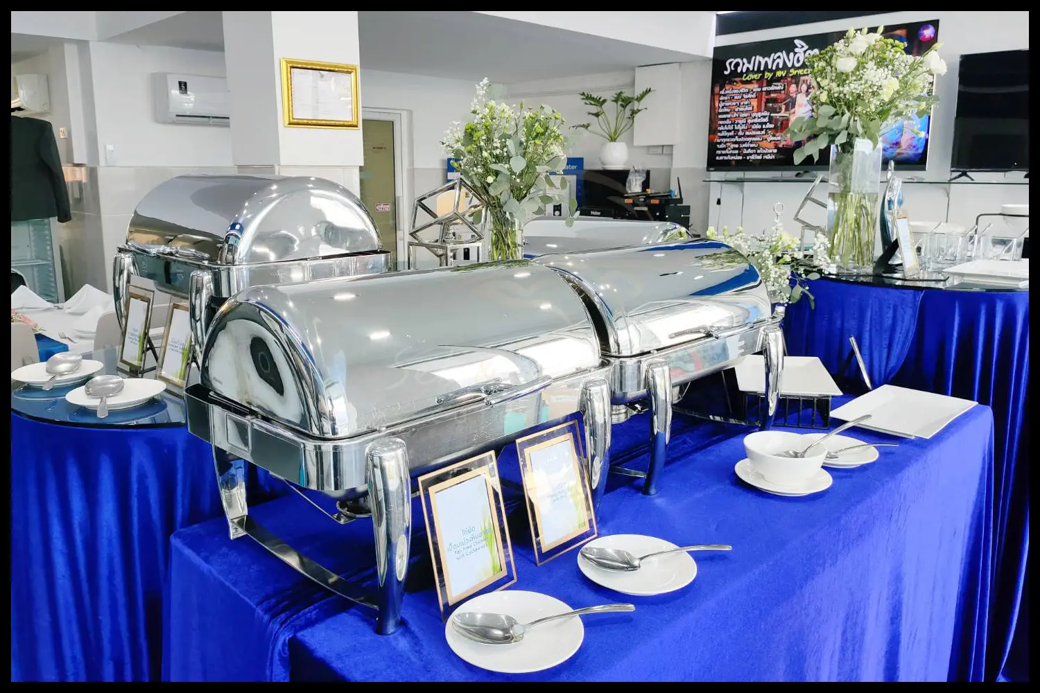 เรามีบริการ catering กรุงเทพฯ และพื้นที่ใกล้เคียง แบบครบวงจร ทั้งอาหาร อุปกรณ์จัดเลี้ยง ทีมพนักงานเสิร์ฟ และการตกแต่งงาน เพื่อให้ลูกค้าไม่ต้องจัดเตรียมอะไรเพิ่มเติม