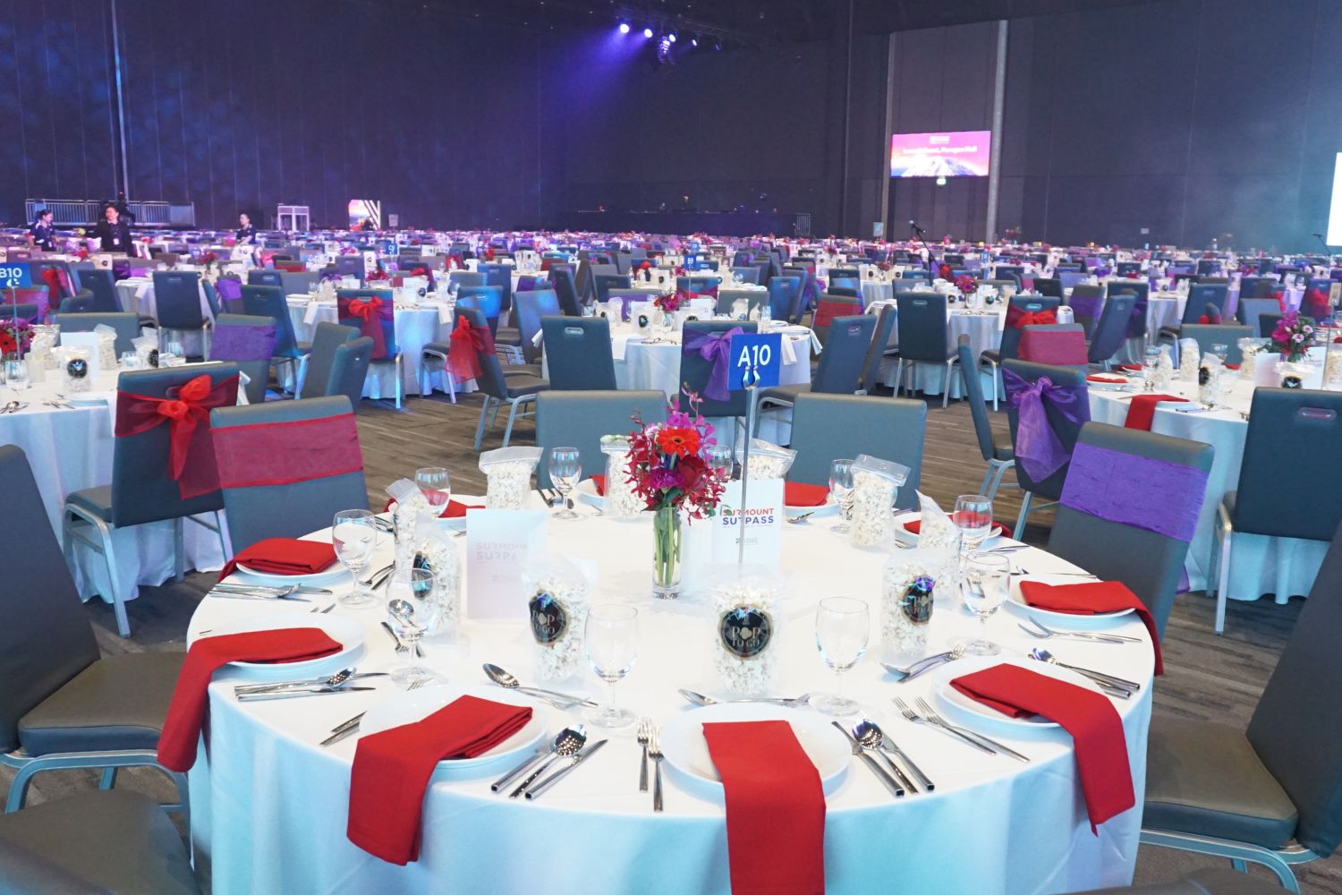 เพื่อเติมเต็มความสมบูรณ์แบบให้กับค่ำคืนพิเศษ ภายในฮอลล์ได้ถูกตกแต่งด้วยแจกันดอกไม้ถึง 125 แจกัน ในธีม "สีม่วงและสีแดง" ซึ่งสะท้อนความหรูหราและมีพลัง พร้อมจุดบริการเครื่องดื่มที่จัดเตรียมภาชนะอย่างพิถีพิถันสำหรับเสิร์ฟ Red Punch และเครื่องดื่มยอดนิยม สร้างความประทับใจไม่รู้ลืมให้แก่ผู้ร่วมงานทุกคน